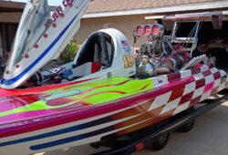 OUTSTANDING Sanger hydro is a 1986 outboard steering, ALL NEW EVERY THING new $ 21 K paint job multi color, all powder coated or chrome inside and out. Floor all redone. Polished casale box with a whi