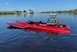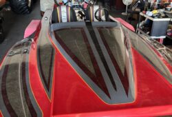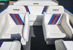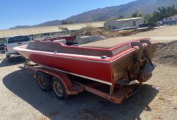 18′ 6″ Cole CH1 drag boat with trailer & lots of extras including original brochures and history along with a matching maroon custom cover made with Sunbrella fabric & ownership of