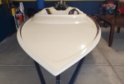 Hull was laid up by Fiber composites, 19′ Rouse mold, floors finished, Custom fast b