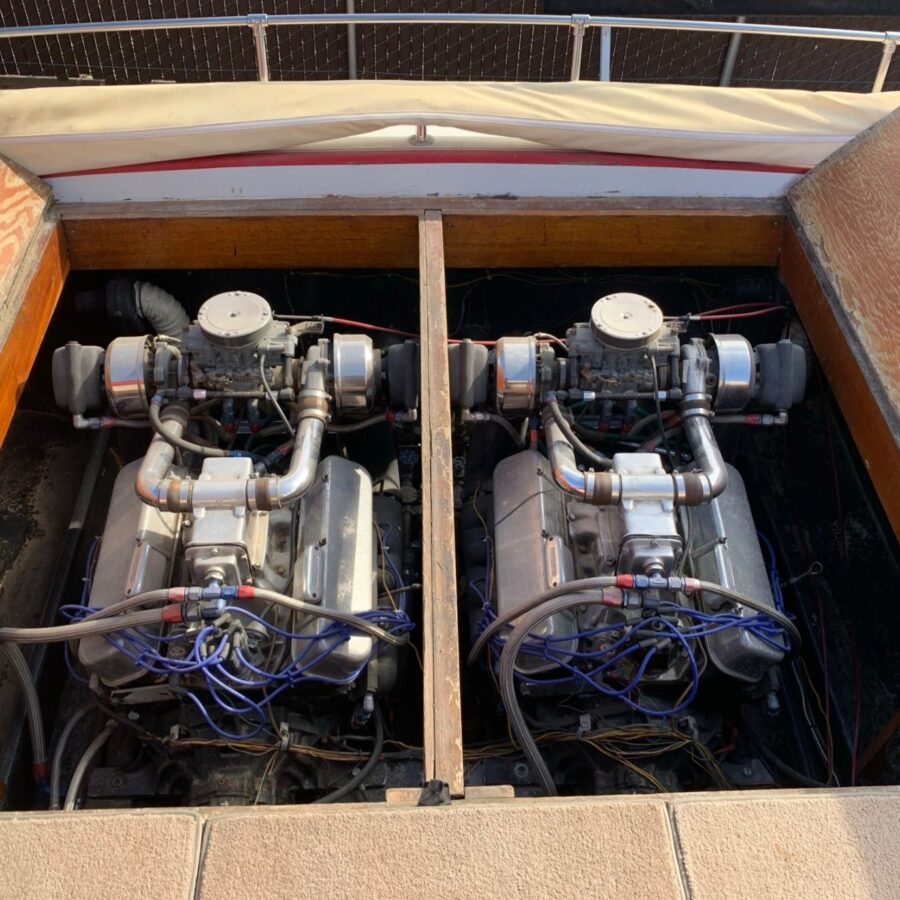 Definitely a survivor! U need to see this one. Dual 454 BBChevy Turbo Motors . Intercoolers, oil coolers , L88 Aluminum Heads, less than 5 hours on Engines. Boat was on Lake Mohave in Feb 2023 and then put in Storage . Basically a one owner boat ( He passed) . We started the motors yesterday ! Sound great i have video Probably needs water pump impellars and new batteries from the AZ heat. This is a must sell situation . Lost storage. Bullhead City Arizona. 818-599-7979