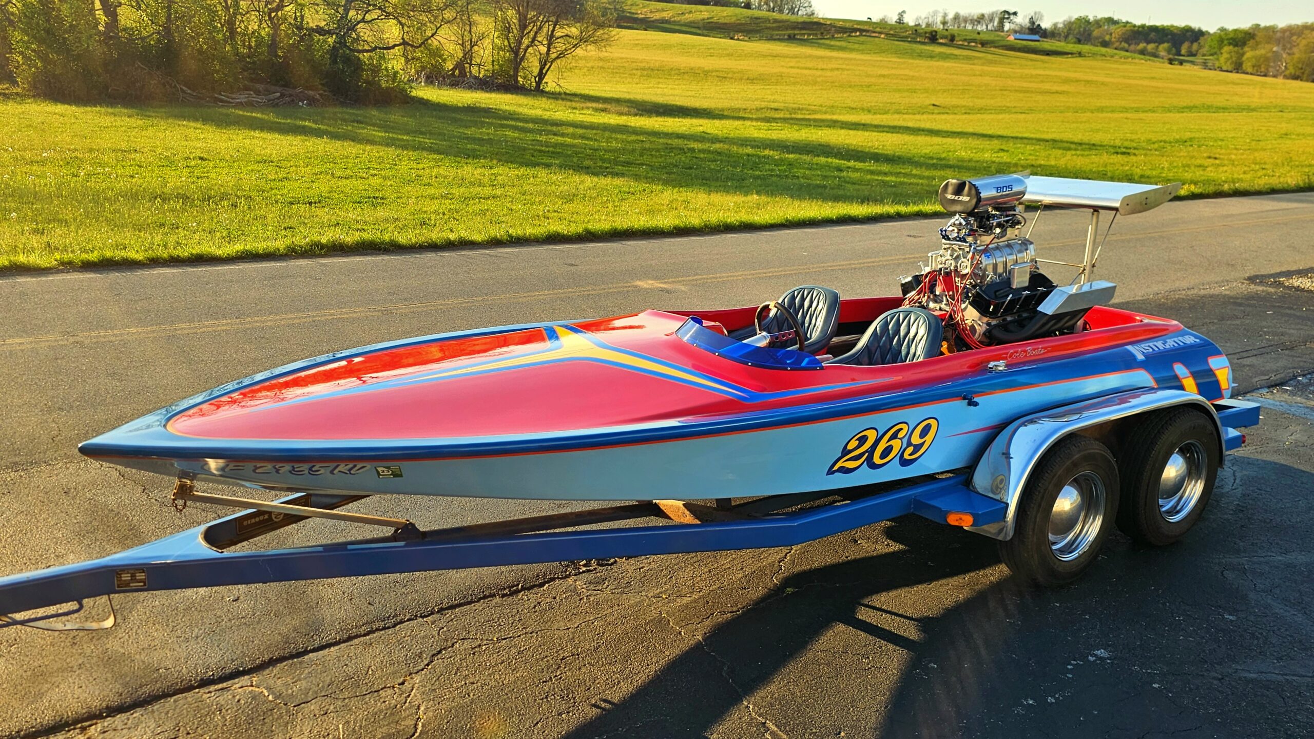 1979 Cole T-deck runnerbottom, this boat’s stringers and hull are in excellent condition. 434″ BBC. BMF 385 aluminum heads. Mooneyham 871 blower. Runs on pump gas, Only 2 trips to the lake on a freshened engine! Road trailer is in great shape, boat is turn key ready to go to the water! Way to much to list! A true must see boat!! Any questions Call Kyle @ (785)-259-1034