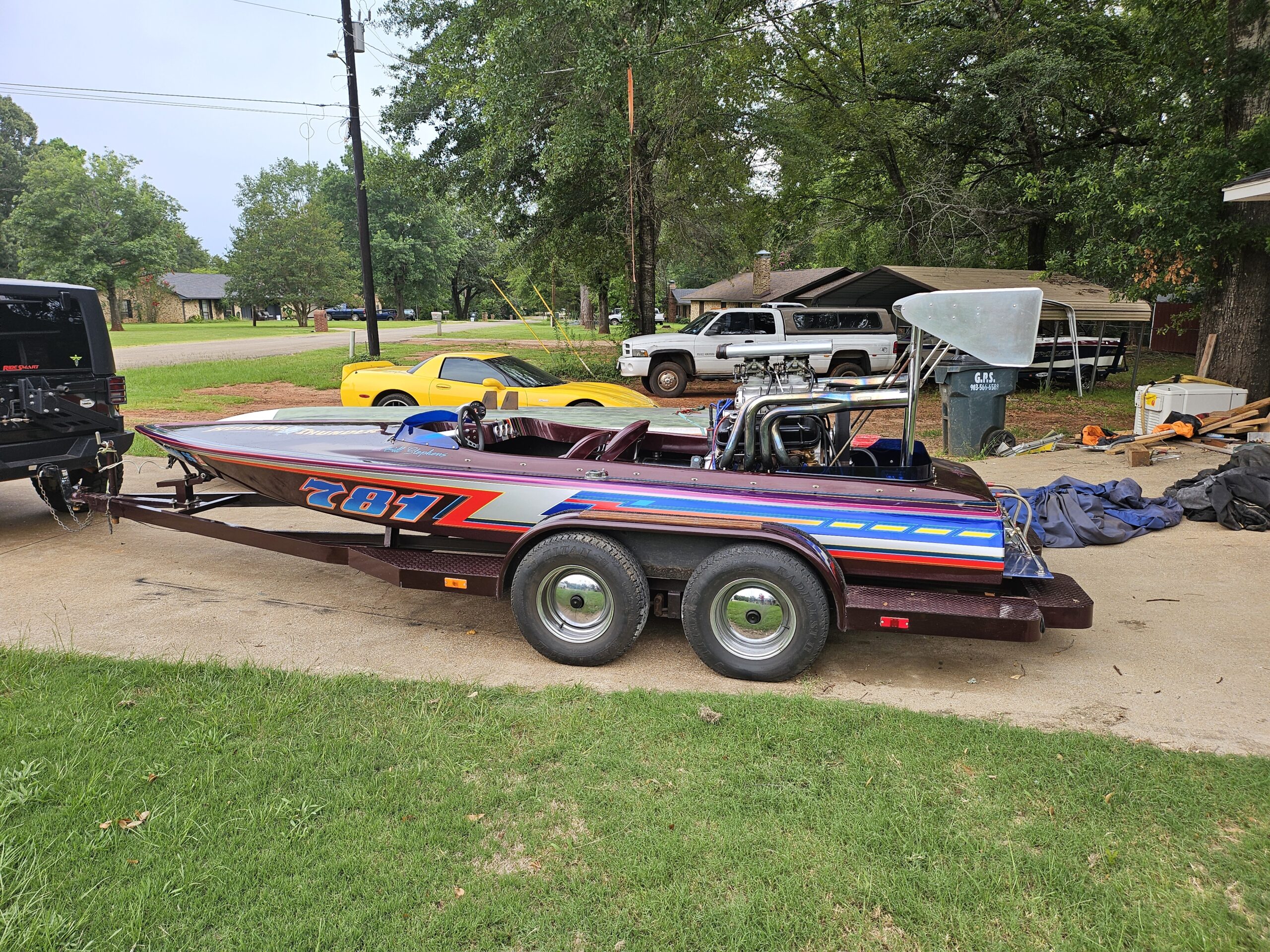 Hondo Blown Gas Flat fresh 496 with new Eagle Crank, Manly Rods, AFR heads, Boat is extremely fast and straight running. Available with or without power. $14k without and $25000 with. Beautiful paint